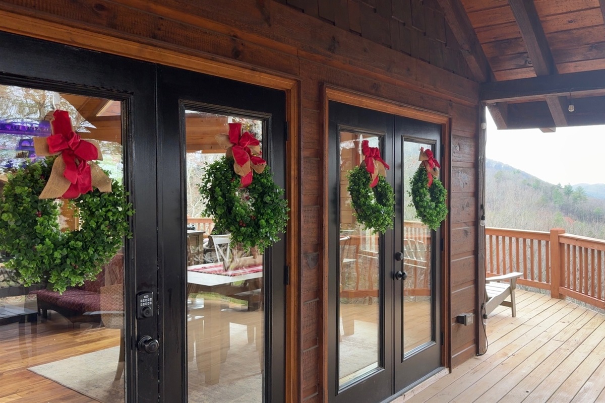 Up the Mountain Laurel staircase is the master bedroom! The master bedroom offers a King size bed, a luxurious master bath that boasts a granite counter top double vanity, large tile shower, and a jetted garden tub for a relaxing soak. The master bedroom also has a private balcony, ideal for morning coffee or drinks for two while relaxing in the mountain air!
